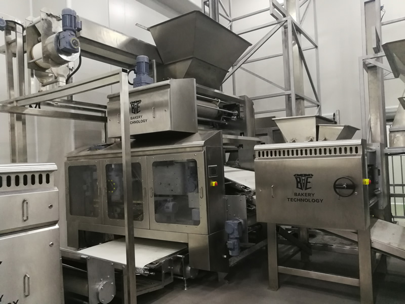 配合喂料機將軋薄的面皮切片并依次疊加至8~16層,并輸送至成型軋輥,該機能將回面始終處于面皮底部,經(jīng)切片式疊層機生產(chǎn)出來的餅干層次感強、口感松脆、酥化程度極高,配合機器上的撒酥機,可生產(chǎn)蘇打餅干和其它高檔餅干。